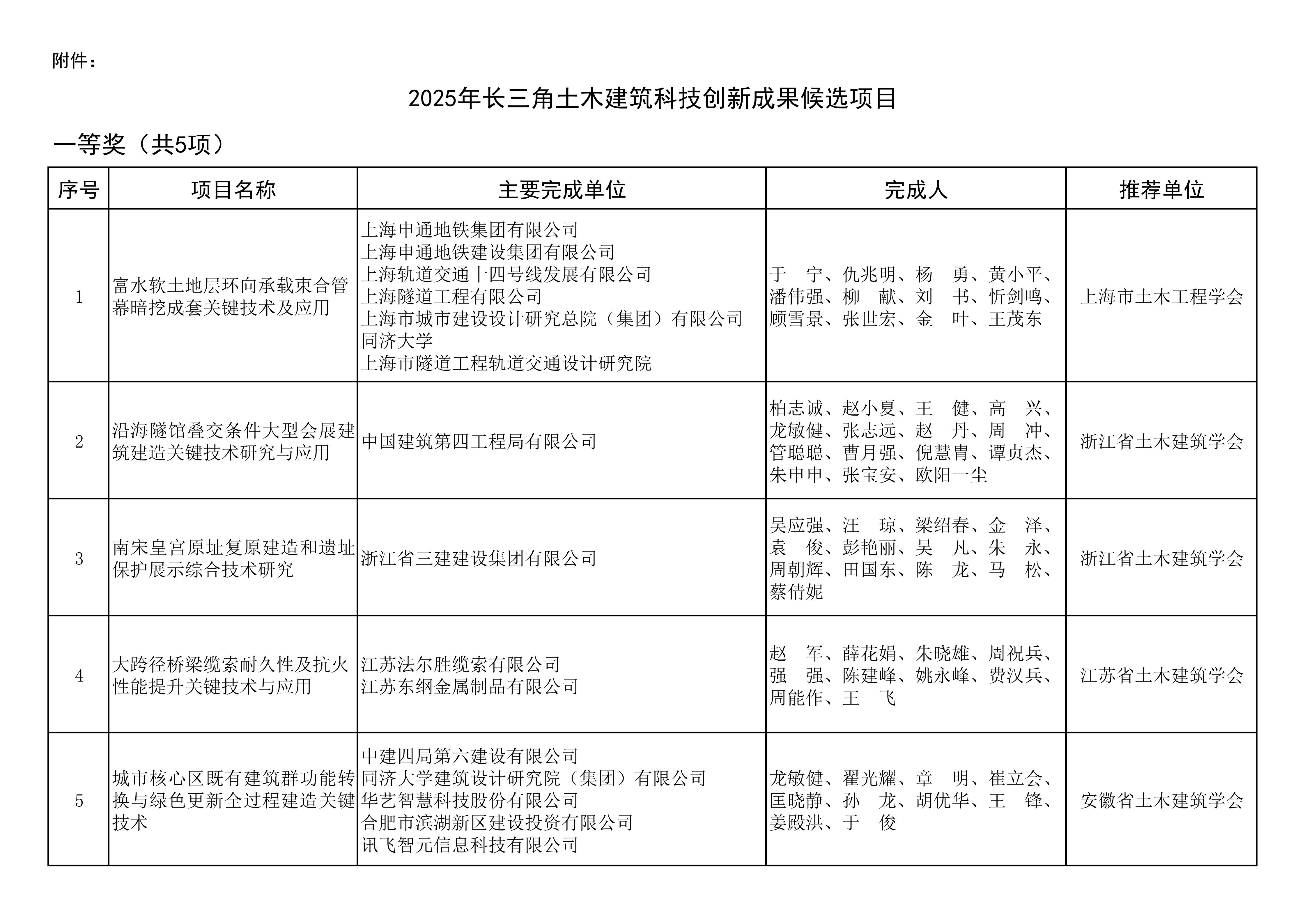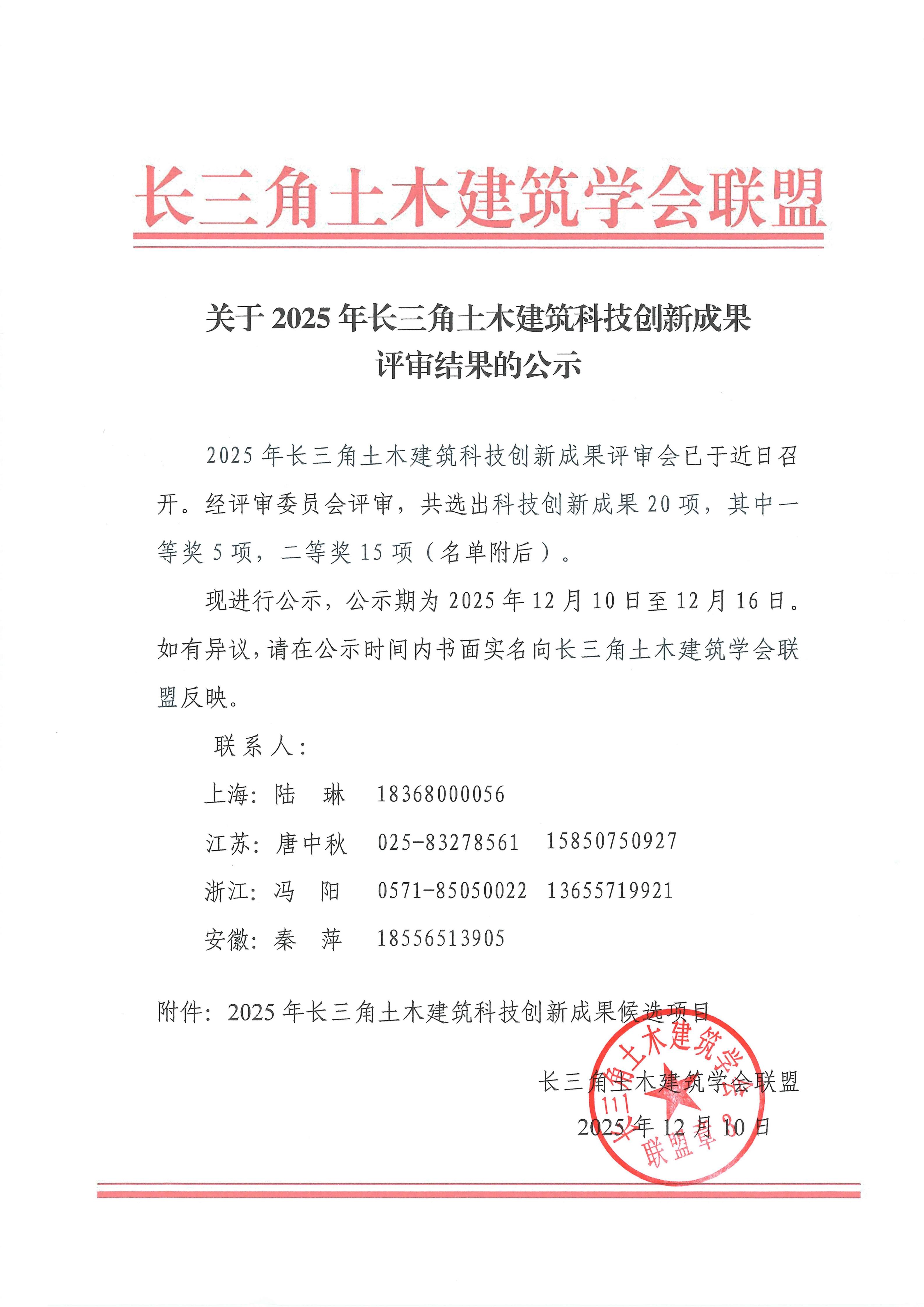 关于2025年长三角土木建筑科技创新成果评审结果的公示
