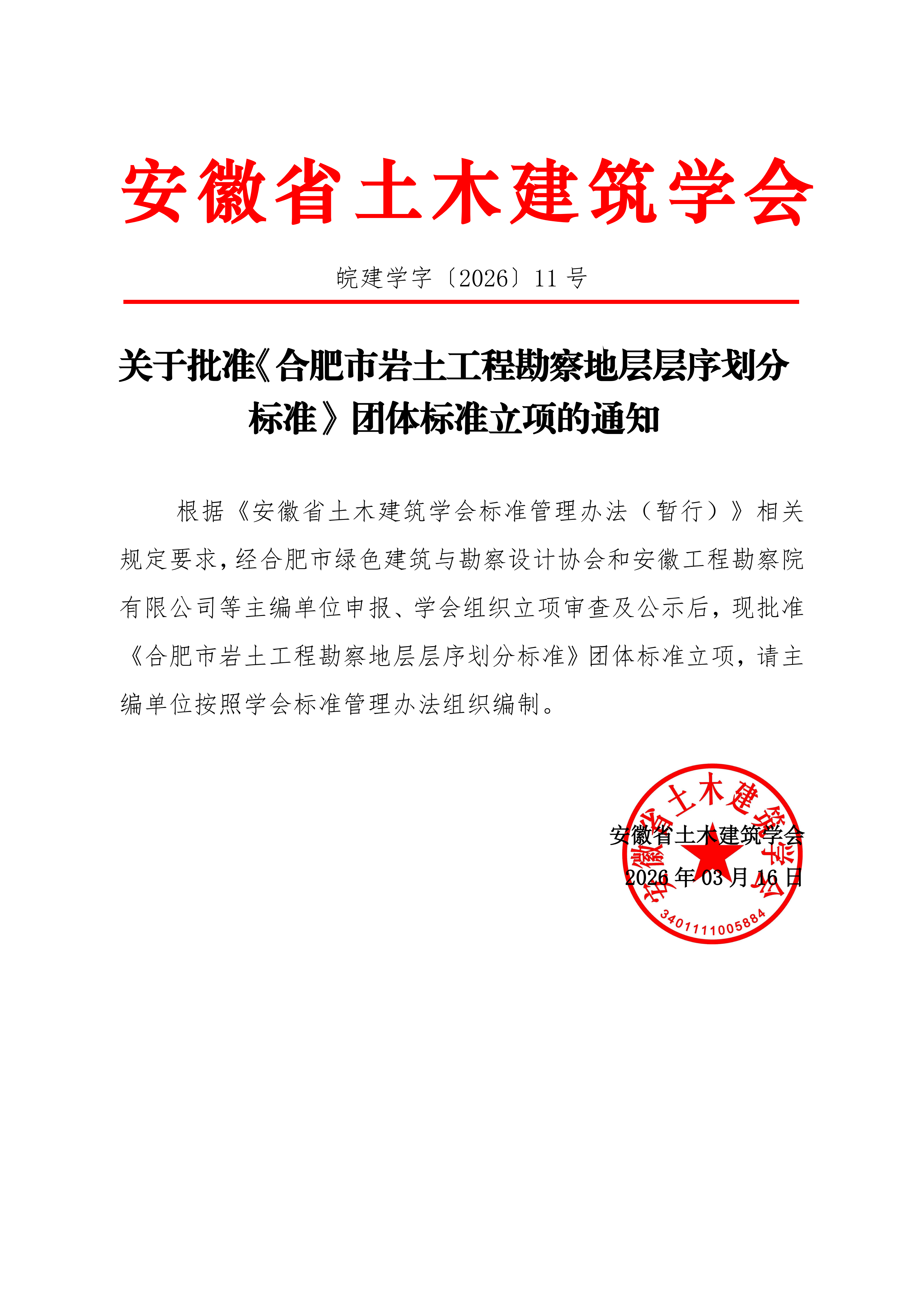 关于批准《合肥市岩土工程勘察地层层序划分标准》团体标准立项的通知
