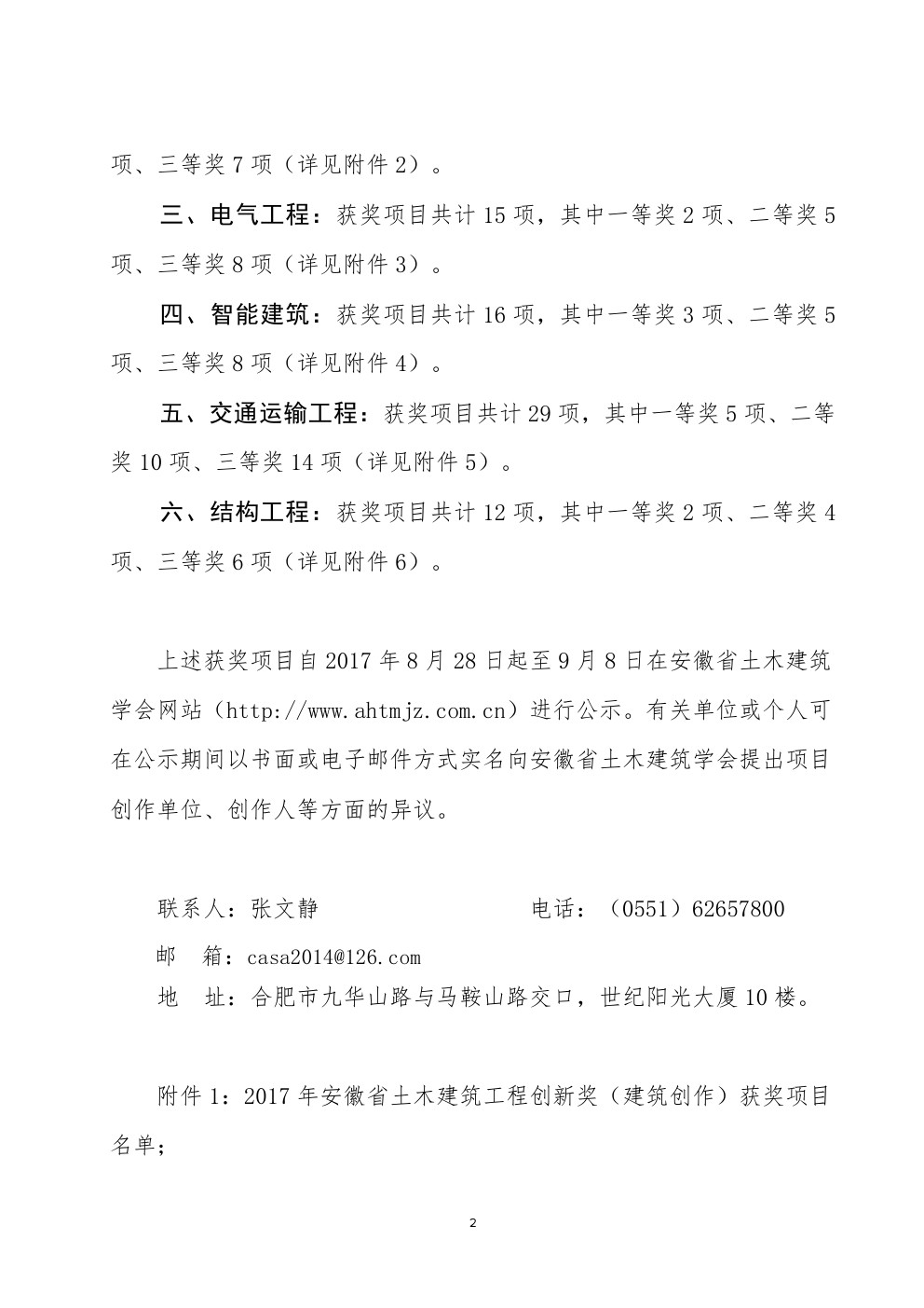 附件1:2017年安徽省土木建筑工程创新奖(建筑创作)获奖项目名单