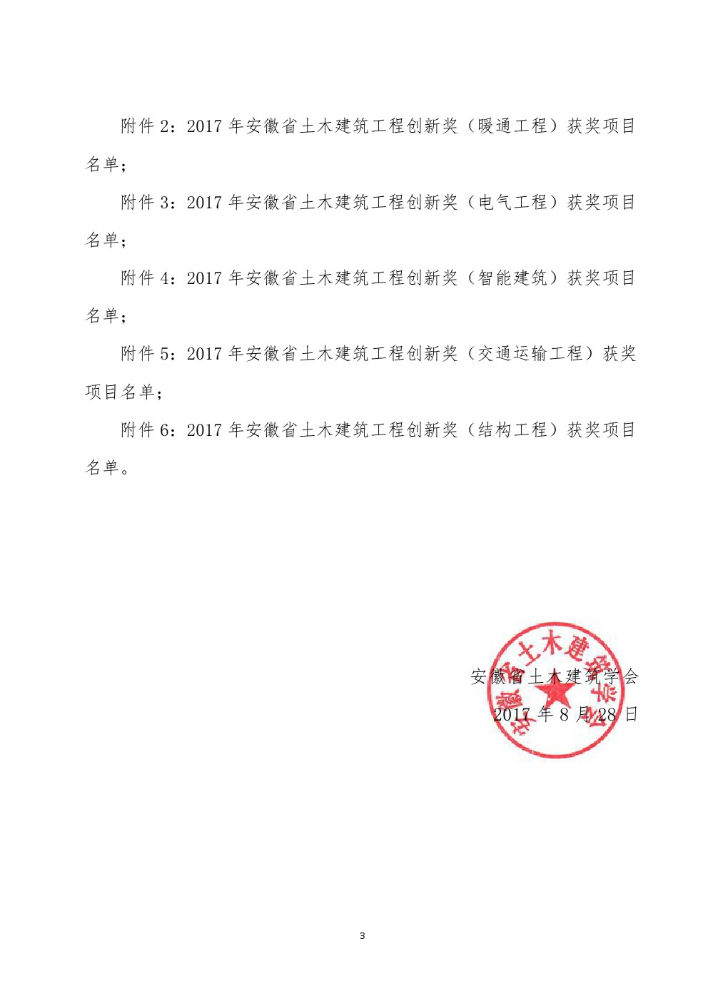 附件3:2017年安徽省土木建筑工程创新奖(电气工程)获奖项目名单